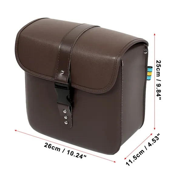 Features: These saddlebags store tools, papers and any other kinds of stuff. The thick faux leather sheet helps the bag keep in shape, make your motorcycle attractive. Keep your belongings handy and securely while driving the motorcycle. The bags are resistant to water and heat. Very easy to install and use. Specifications: Condition: Brand New Material: Faux Leather Color: Brown Size: 26x11.5x25cm / 10.24"x4.53"x9.84"(L*W*H) Notes: Please allow 1-5cm difference due to manual measurement. There are no instructions included in this product. Package Includes: 1 Pair x Motorcycle Saddlebag 1 x Rope