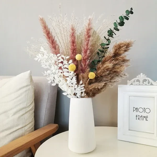 Features: 100% Brand New and High Quality! Product Name:Natural Dried FlowersPampasGrass Material: Natural Dried Flowers Color: 6 styles Size: Length: about 50-55cm(1CM=0.39inch) Occasion: Wedding & Home Decor Apply to: home,wedding, party, office decoration, shooting props, gifts, festival ceremony and so on. Package Included: 1 set Without Vase/Bunch Note: 1.Due to the difference between different monitors, the picture may not reflect the actual color of the item. 2.Make of natural material, the defects and size different can't be avoid. 3.After receiving the goods, it will look good after a short time in the sun or the hot air of the hair dryer.