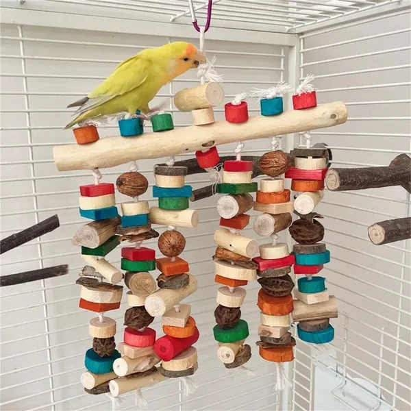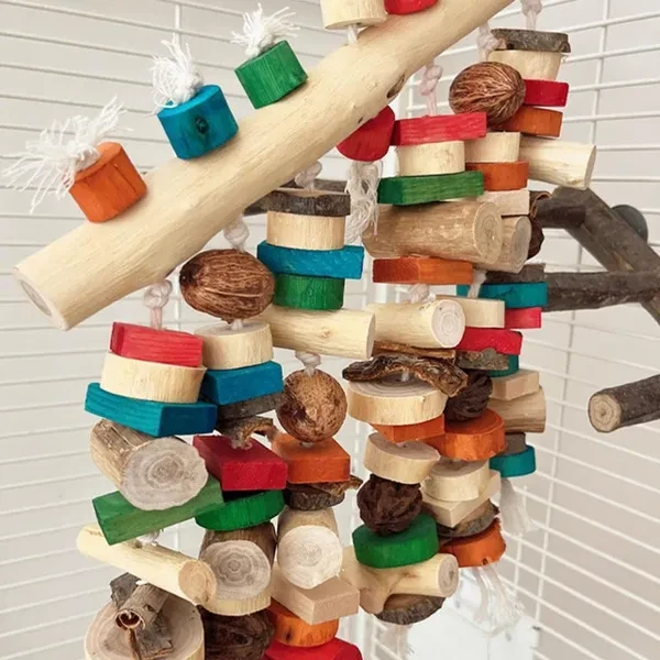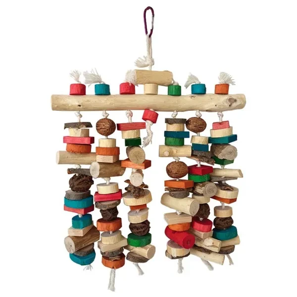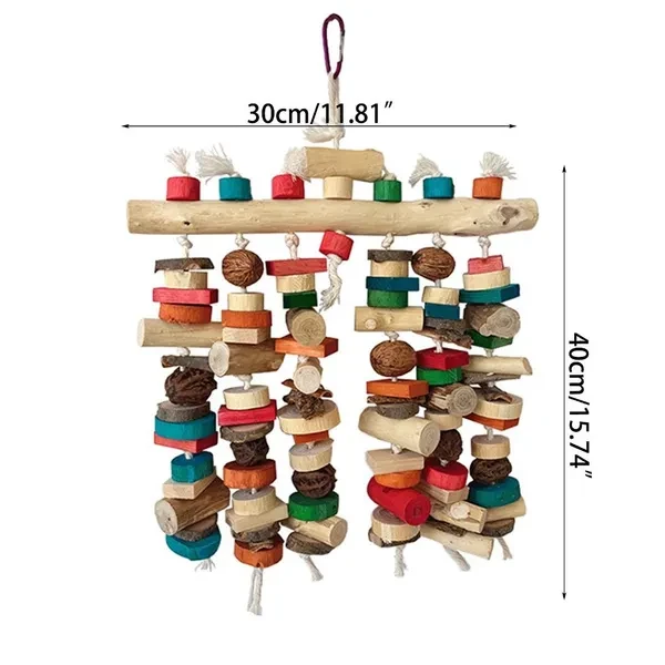 Features: The toy can be placed in different positions of the pet cage, so that you can easily and appropriately arrange the items in the cage. Allow your pet to easily exercise and chew in the cage. Not only suitable for pet to exercise teeth, but also can be used to decorate birdcages. The toy be made of natural Wood, Nut, Bark, Blocks materials, environmentally friendly, wear-resistant and durable. Suitable for parrots, macaws, parakeets and other medium-size and large parrots. Specifications: Material: Nut, Bark, Blocks Size: Approx.30x40cm/11.81x15.75inch Note: 1.Please allow 1-3cm errors due to manual measurement, make sure that you do not mind before you order. 2.Due to the differences between different monitors, the picture may not reflect the actual color of the item. Package includes: 1x Bird Toy