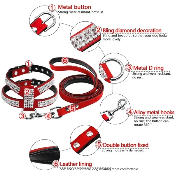 Features: 100% Brand New and high quality Adjustable dog collar brings you convenience. Soft PU Faux Suede Leather Dog Cat Rhinestone Collars. Make your dog more attractive and cool . Colors : Red, Pink, Black Material: Nylon + Rhinestone Size:As pictures show Accessories: Bling Rhinestone & Cute Bowknot Applicable Breeds : Small Medium Dogs and other animals, eg, Chihuahua, Pug, Pitbull, etc. Package Included: 1pc x pet Collar+pet Leash Note: Before you order, Pls sure your dog's neck is suitable for this size (That's very important,Thanks very much!) 1 inch = 2.54 cm Please allow 0.5-1CM differs due to manual measurement. Real color may slightly different from pictures due to computer screen's resolution,brightness, contrast etc. Hope understanding. Have a nice shopping day!