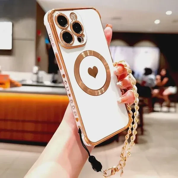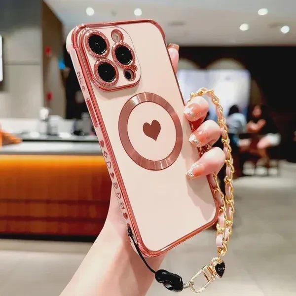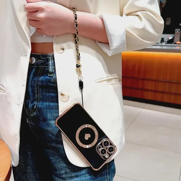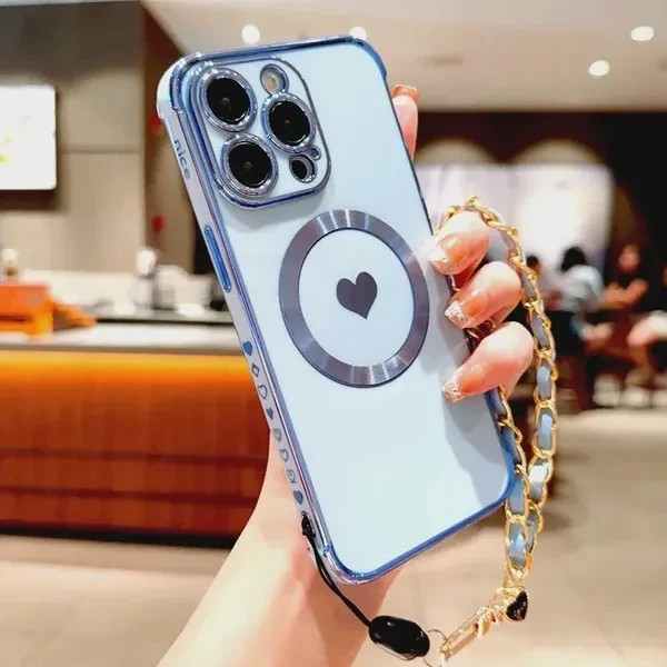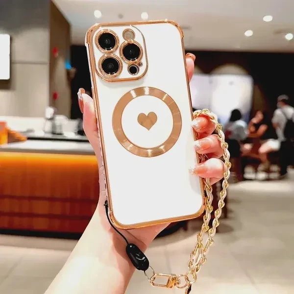 Plating TPU Case For IPhone 16 15 14 13 12 Pro Max Plus 16Pro IPhone16 ProMax For Magsafe Mag Safe Charge &Wrist Lanyard Cover