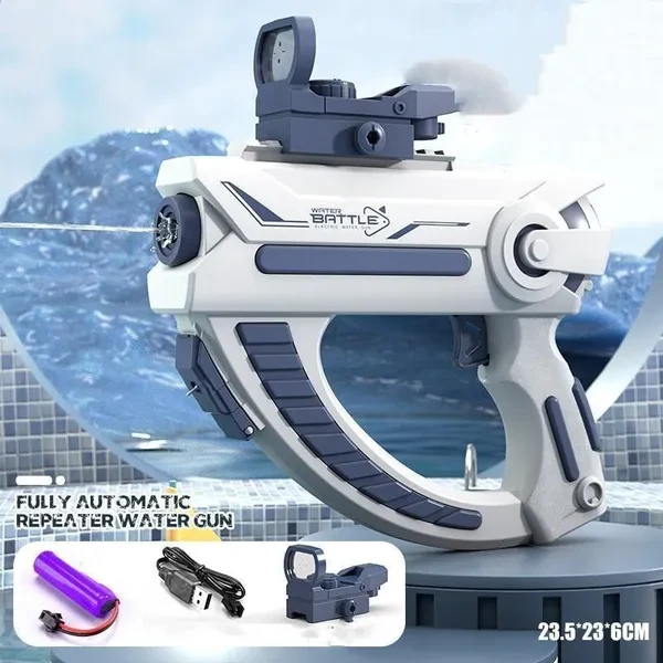 Product: Super long-range continuous-fire electric water gun Name. Summer electric water gun Age: 8 years old and above Material. Environmentally friendly ABS plastic Model number: as shown in the photo Features: high quality, environmentally friendly, fully automatic, continuous firing Packaging: with box Warm Tips. In order to save shipping cost, we usually do not use the original packaging to ship the goods. If you need a box, please contact the seller to ask for additional shipping costs. Including small parts, please pay attention to children under 3 years old. Avoid contact with eyes and do not put it in your mouth. When you receive the goods, please check the goods, if it is broken in some parts, please contact the seller to solve the problem in time. We will be grateful for your support.