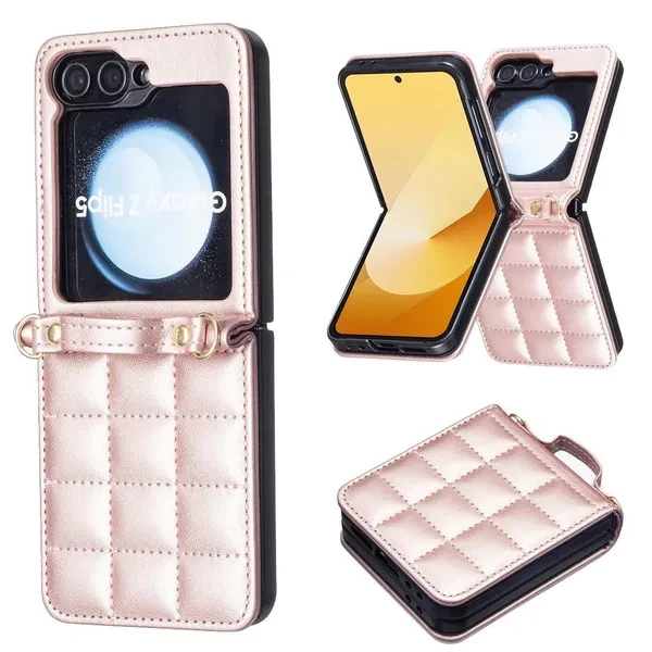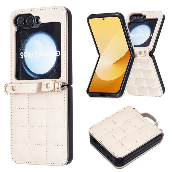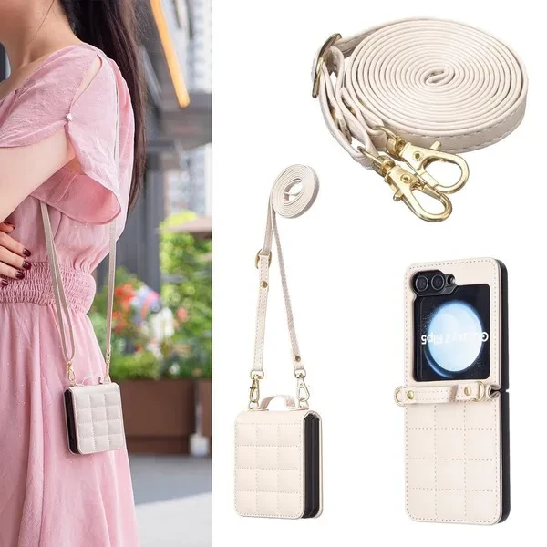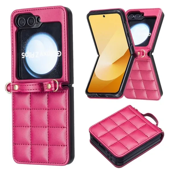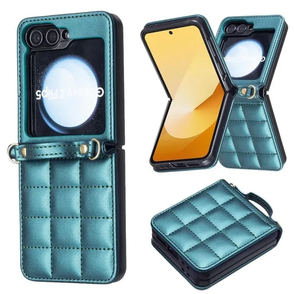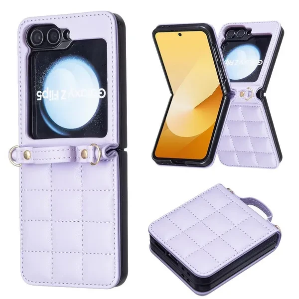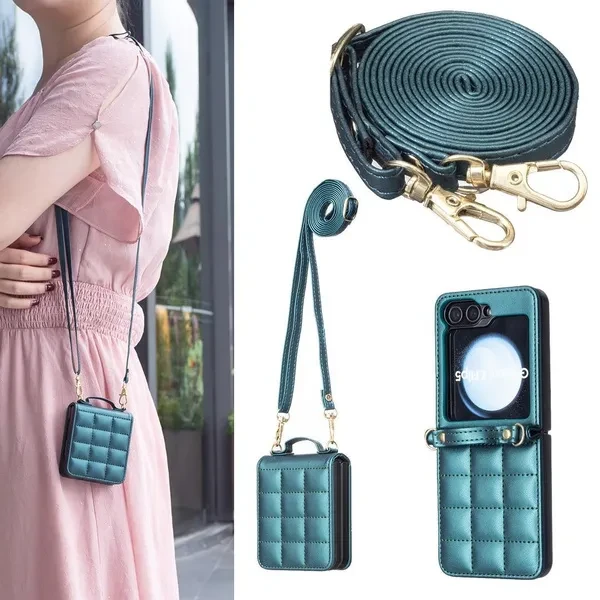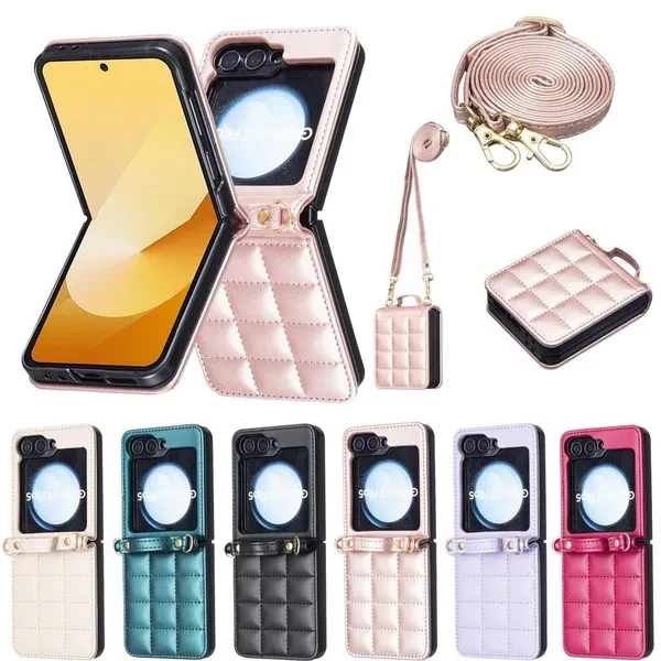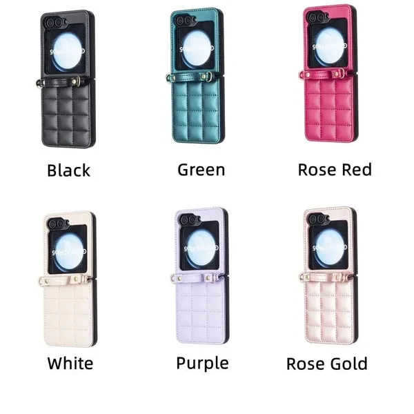 Pure Color Square Series Case Cover for Samsung Galaxy Z Flip 3&Z Flip 4&Z Flip 5&Z Flip 6 Phone Case With Long Lanyard