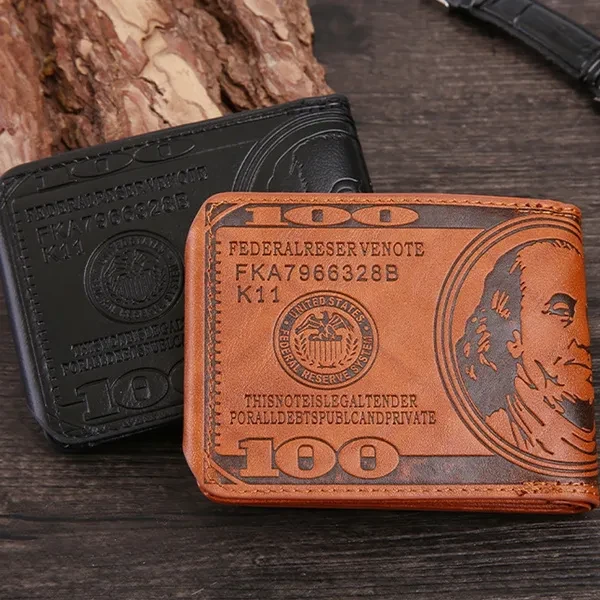 Retro fashion Men's Leather Wallets Dollar Pattern Casual Credit Card Holder Purse Wallet For Men Wallet Business card holder with multiple card slots