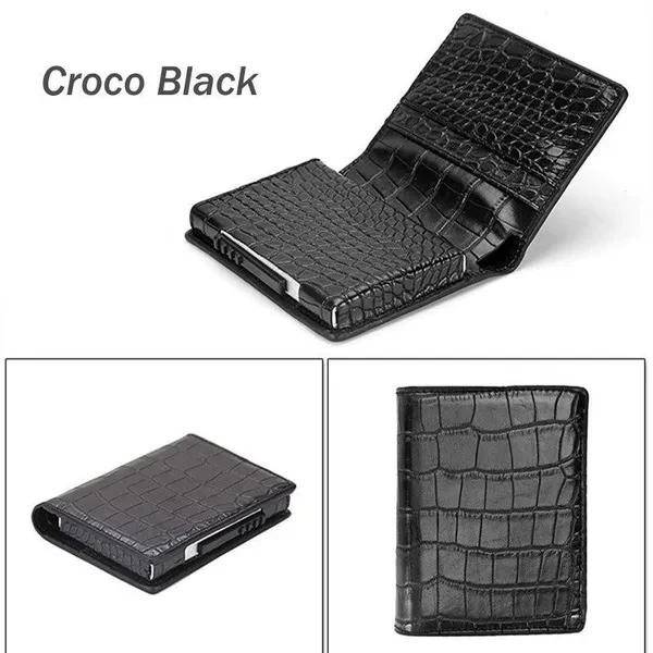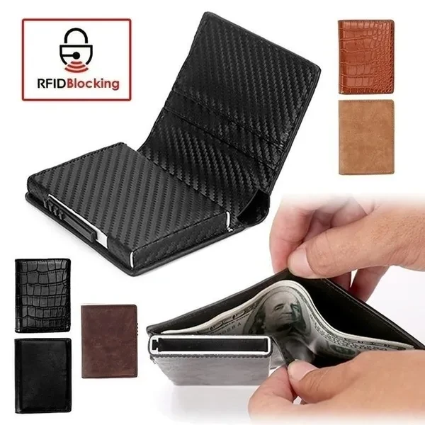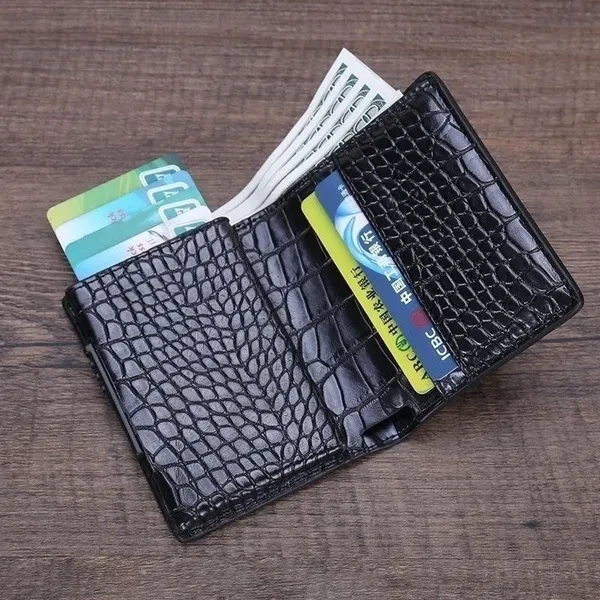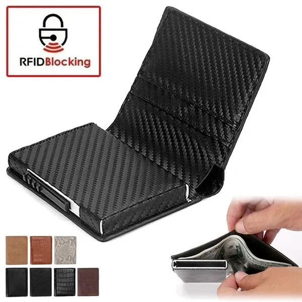 Rfid Blocking Business Men Small Wallet Multi-function Aluminum Card Holder Slim Wallet PU Leather Small Purse Wallets for Men Card Holder Wallets