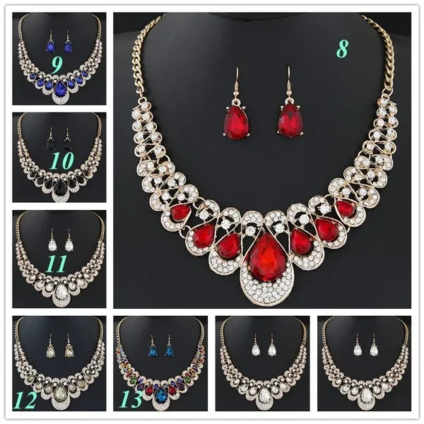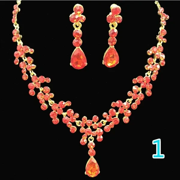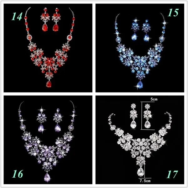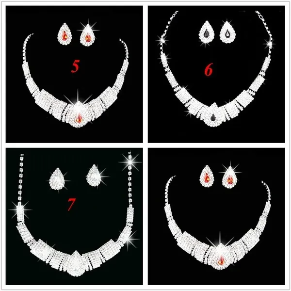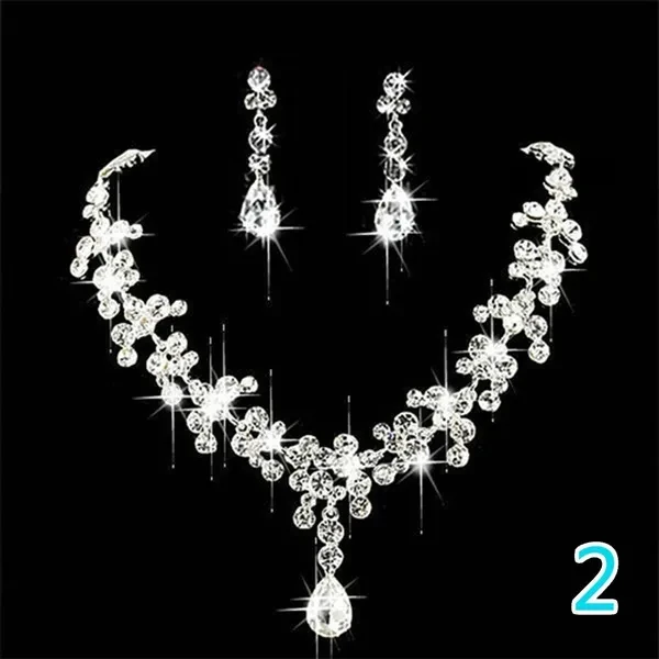 Rhinestone Drop Necklace Earring Plated Jewelry Set for Wedding Bridal