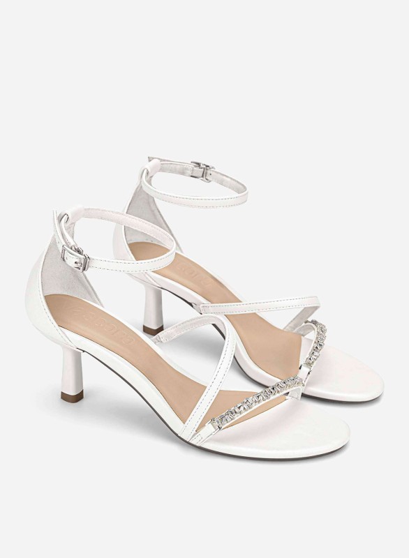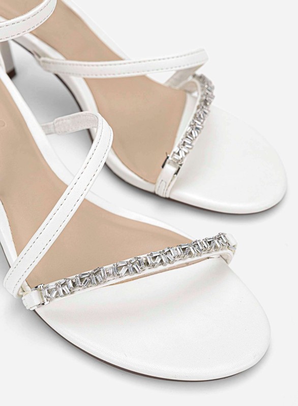 Rhinestone Strap Kitten Heel Sandals - PUM 0815 - White