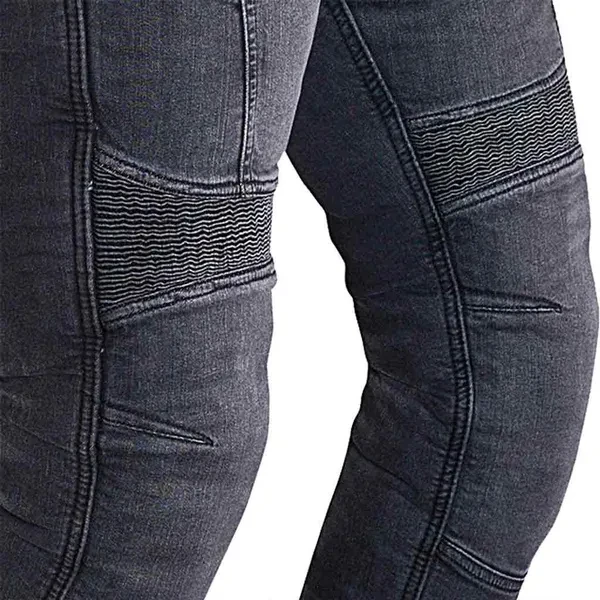 Experience next level of comfort with this biker men jeans pant, made of a heavy duty stretch denim, reinforced with aramid fiber lining, elasticated panels on knee andrear for ultra comfort which makes this jeans pant a perfect pick for casual street riding or touring while removable CE armors for knee and hips leaves you with nothing to worryfor your protection when on two wheels. Features: -Heavy duty stretch Denim fabrics -Reinforced with aramid fiber lining throughout impact areas - hip, thighs and knees -Elastic panels on knees and back for added comfort -YKK zipper fastening -Internal CE standard armor pockets -Regular fit cut -Comes with complementary removable CE standard Armor -Available in a variety of colors (Browse our collection to pick your favorite one) Material: -98% cotton and 2% spandex -Lined with 100% DuPont Kevlar fiber -100% Polyester mesh lining -YKK zippers Package Includes: -1 xMotorcycle RidingJeans Pant -1 x Set of CE standard armors (Hip and Knee pads) DuPont and Kevlar are trademarks of affiliates of DuPont de Nemours, Inc.