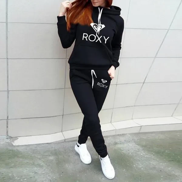 ROXY-Womens NEW Women Fashion Two Pieces Tracksuit Set Printed Sport Suit Autumn/winter Hoodie + Trousers Set Jogging Suit Long Sleeves Tops+ Long Pants Suit Plus Size S-4XL