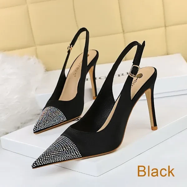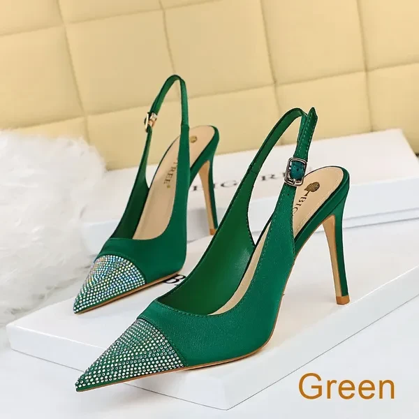 Product Category: Fashion Sandals Color: Red, Black, Pink, Light Gold, Silver,Green Size: 34,35,36,37,38,39,40,41,42,43 Heel Height: 9.5 cm Platform Height:0.5 cm Upper Material: Silk And Satin Insole Material: PU Sole Material: Rubber Shoe Sole Process: Viscose Shoes Back Style: Slingback Head Shape: Pointed Toe