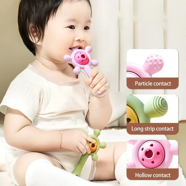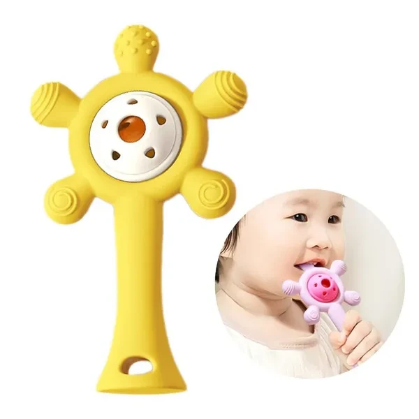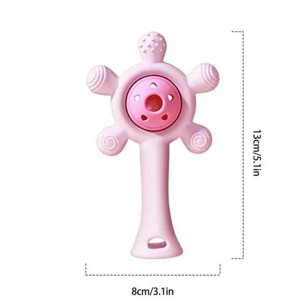 <p>Features: Relieve baby teething discomfort with this handheld teether, make from grade silicone for safety and peace. The gentle sound and bright color of this teether will baby attention and provide stimulation during use. Designed for baby, especially those experiencing discomfort during teething. Whether home, outdoor, while traveling, this easy to carry teether is perfect for soothing baby teething. Give baby the relief they need and make teething more pleasant experience with this safe and practical handheld teether. Specifications: Size: About. 13x8cm/5.1x3.1in Color: Multiple color to select, please refer to the picture Package Includes: 1x Teething Rattle note: Please allow 1-2cm errors due to manual measurement. Due to difference between different monitors, the picture may not reflect the item actual color. </p>