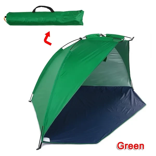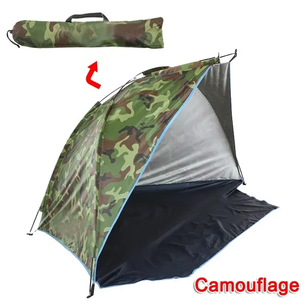 Features: Durable tent for fishing, picnic or having beach fun. Good ventilation keep you cool. Lightweight and comes in a carry bag. Specifications: Color: Blue, Camouflage, Green Fabric: 170T silver coated polyester taffeta Ground sheet: Oxford fabric Tent pole: 7mm fiberglass pole Unfolded size: 220 * 120 * 120cm / 7.2 * 3.9 * 3.9ft Package List: 1 * Tent 3 * Tent Pole 4 * Tent Peg 1 * Carry Bag