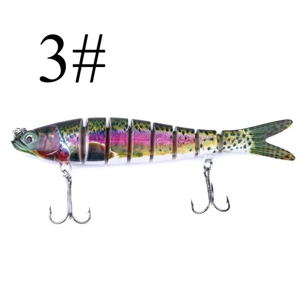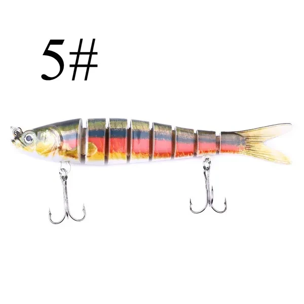 1.MULTI JOINTED BODY - The body pieces connect with textile fabrics allows this lures wiggles to side to side like a real fish would swim. 2.ARTIFICIAL SOLID SWIMBAIT - Reusable environment protective largemouth crankbaits. Different colors and patterns to match any fishing environment. 3.BUILT-IN GRAVITY BALL - Raise the throw distance, produce sound attracts the big predators. Streamlined Design reduces wind resistance during throwing. 4.Wonderful fishing accessories for fishing lovers.Great for fishing bass, yellow perch, walleye, pike, muskie, carp, roach, trout, etc. Specifications: -Material: ABS Plastic,Steel Wire,3D Eyes -Length: 10cm -Weight: 11g -Diving depth: Slow Sinking -Hook: 6# Package List: 1 * Swimbait Fishing Lure