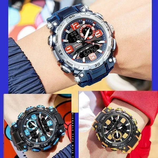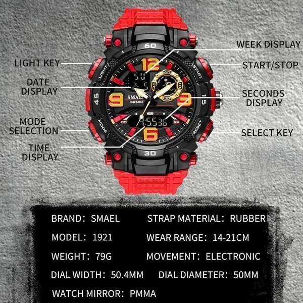 SMAEL New 1921 Sport Watch Dual Time Men Watches Men's Quartz Electronic Watches Waterproof 3Bar Shock Resisitant Alarm Clock