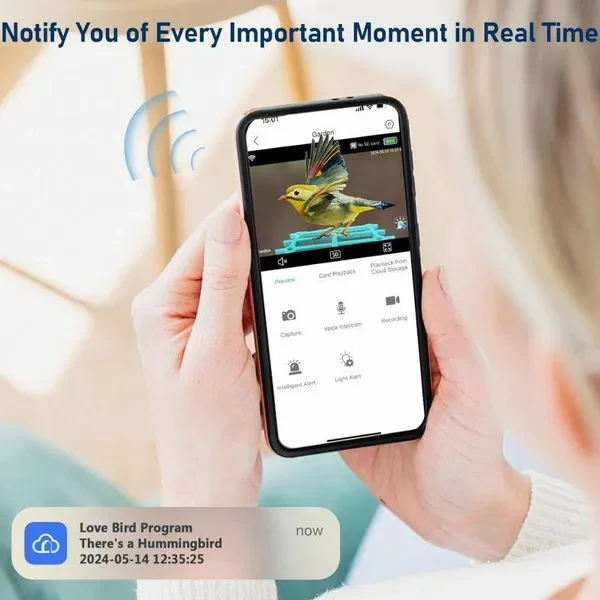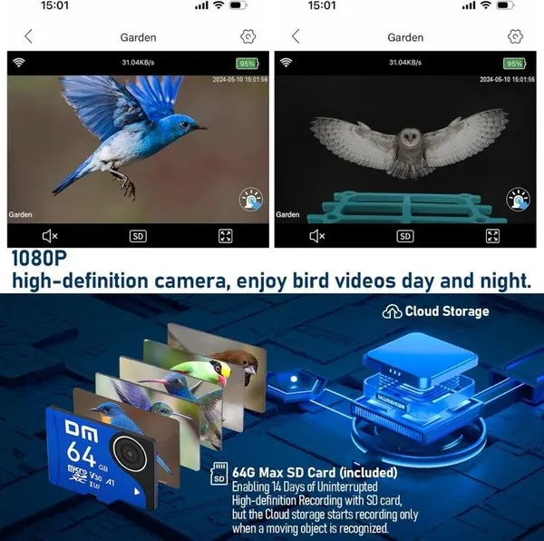 Share on the go with your phone: You could share the joy and wonder brought by variety of birds to any one you love and social media you like just click the button on your phone.This smart bird feeder with camera connects through 2.4G WiFi, opening your eyes to a cinematic view of bird family with its 140° wide-angle camera, AI intelligently identify more than 10,000 bird species, automatically capture every wonderful moment and send you notifications in real time, which will amaze you! Ideal feeder that keeps memories alive: Give your loved ones a bird feeder with camera, it's a HD diary of the bird, with a 4 million pixel HD camera and a 64G SD card, high-definition non-stop recording of every trembling and chirping of the birds for 14 days, bird camera feeder built-in 5000mAh battery and 3W external polycrystalline silicon solar panel, rechargeable when exposed to light even on cloudy days, bird feeder advanced night vision technology reveals the life of birds after dusk. Effortless connectivity and enhanced interaction: The easy-to-use "Tris Home" app can works with Alexa and features a 5dBi external antenna for superior signal strength. The bird feeder with camera support for multiple mobile devices allows simultaneous viewing or share captivating moments, interact directly with the birds through two-way audio, and listen to their responses to your sound, adding a smart bird feeder with camera to your garden or backyard will provide great fun for your family. Bird-friendly design: The birdhouse camera is professionally designed as a comfortable home for thousands of birds in your backyard no matter in a rainy or shiny day with IP66 waterproof and robust stand, the large 2-liter transparent container minimizes refills, the smart bird feeder attract birds by showcasing the seeds they love. Watching your garden become a busy hub of bird activity is a true testament to your hospitality to nature's delicate creatures. Share with bird lovers around the world: Say goodbye to binoculars and embrace a new era of engaging with nature, the smart bird feeder with camera as a preferred choice for bird lovers, JEAPKA allows you to bring the joy and wonder of nature right to your doorstep. Our community of backyard birders has become a global community of birders, you will be invited to discuss and share bird videos or fun facts with them.