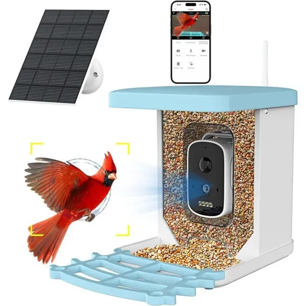 Smart Bird Feeder with Camera Solar Powered AI Identify Bird Species Bird Feeder Camera, 64G TF Card HD Auto Capture Bird & Motion Detection Bird House Bird Watching Feeder for Bird Lover