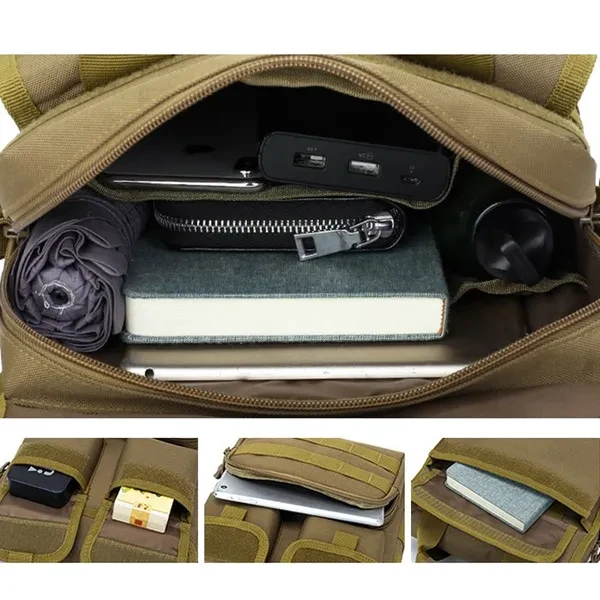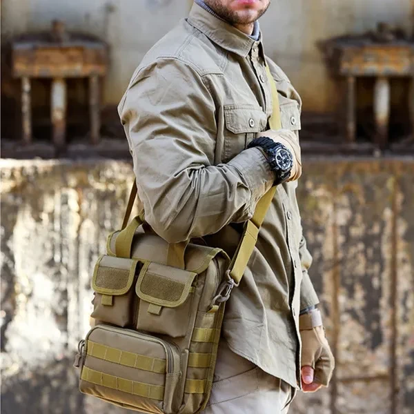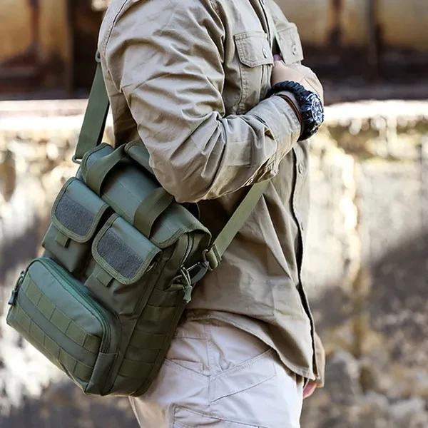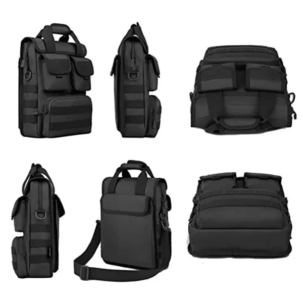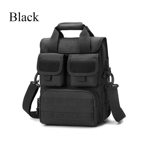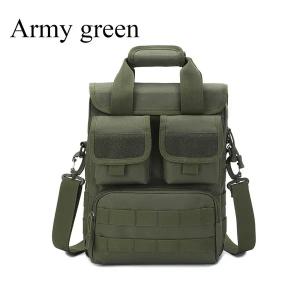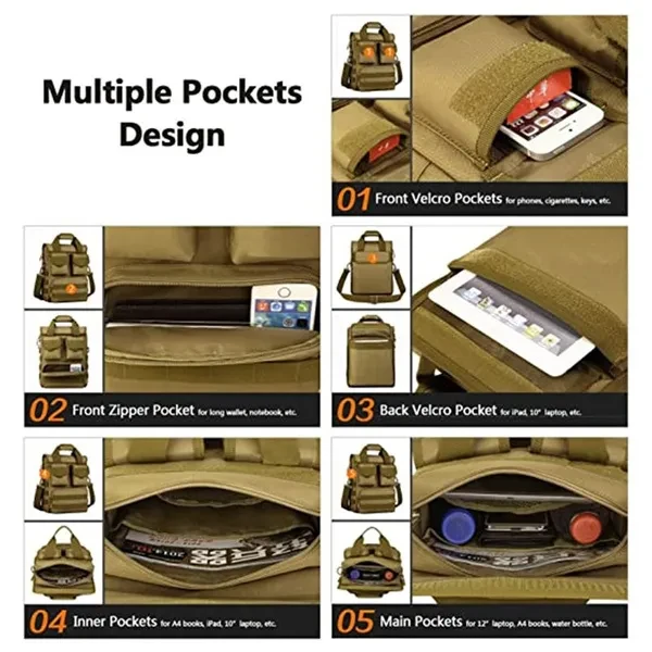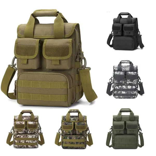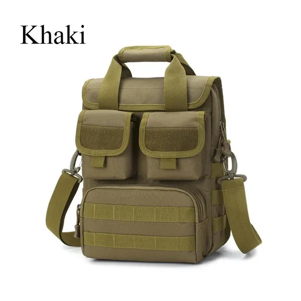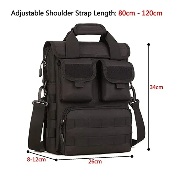 Features: • One main compartment for streamlining tactical, office essentials and 12" laptops • Three front pouches for staying organized and conveniently locate all of your important tools • Back compartments can hold a number of documents, such as passports, credit cards, etc. Specifications: • Material: 1000D CORDURA nylon • Dimensions: : 10.2" x 13.4" x 4.7" / 26 x 34 x 12 cm • Color: Black,khaki, army green ,acu digital camo,desert camo Package Included: • 1 x Tactical Shoulder Bag