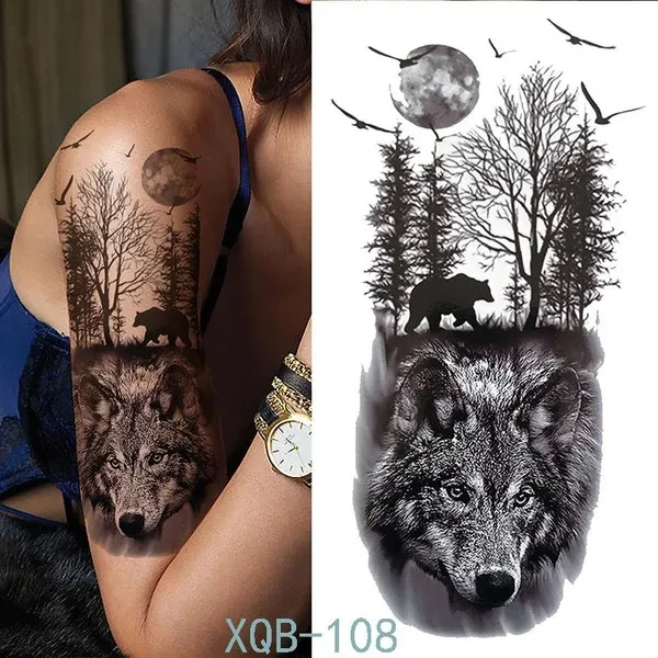 Tattoo Sticker Temporary Waterproof Tattoo Fake Tattoo Wolf Lion Skull Tattoo Black Tattoo Body Art Men and Women Fashion