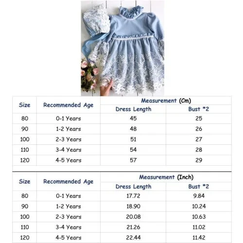 WELCOME - Quality is the first with best service. customers all are our friends. - Fashion design,100% Brand New,high quality! - Material: Cotton & Tulle - Color: As shown in the pictures - Listing Includes: One/Two-Pieces Outfits - Sizes: 80/90/100/110/120 Cm Size Chart: Attention plz: If your kid is chubby, we recommend choosing a larger size, thanks. There is 2-3% difference according to manual measurement. please check the measurement chart carefully before you buy the item. 1 inch = 2.54 cm Please note that slight color difference should be acceptable due to the light and screen. What You Got: 1 x Baby Girl Dress Or:Hat