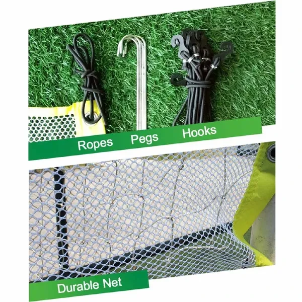 Specifications: Model: Futsal goals, 7-a-side goals, Full size goals Size: Futsal goals: 295x180cm/10x7ft 7-a-side goals: 495x180cm/17x7ft Full size goals: 720x230cm/24x8ft Features: FOUR ZONE TARGET SHEETS – These top of the range soccer goal targets have been designed to isolate the four main scoring zones of the goal. Aim for the top and bottom corners to improve your shooting accuracy. QUICK AND EASY TO ATTACH – Designed with high-strength loop and pin straps which wrap around the goal posts with ease, the professional soccer goal target sheets provide reliable security and shape retention. ALL-WEATHER MESH MATERIALS – Made from high quality Air Mesh materials, the pro soccer targets won’t lose their position during gusts of wind and downpours, providing year round shooting accuracy practice. SET-PIECE AND OPEN PLAY PRACTICE – Learn how to score from anywhere on the pitch with these versatile target sheets for soccer. Their design makes them suitable for free-kick, penalties, short range and long-range shooting. CHOOSE YOUR SIZE – These target goal comes in a range of 3 sizes, making them suitable for mini-soccer, futsal, junior and senior teams strikers training drills. Package Included: 1 x Football Training Goal & Accessories