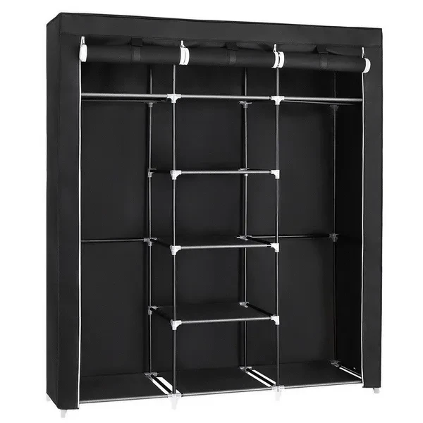 Introductions: Our 69" Portable Closet Storage Organizer Clothes Wardrobe is Made from Selected Non-Woven Fabric Cover, High Quality Steel Tube and PP Plastic Connectors, Which Will Durable and Meet Your Long Term Storage Needs. The Size for The Clothes Wardrobe Makes it Suitable for Organizing Your Small Rooms and Walk-In Closet. Movable Improved Clothes Hanging Rod and 9 Storage Shelves Offers You Enough Space Both for Your Longer Outfits and Folded Clothes. Zippered Dustproof Cover Offered to Keep Your Item Away from Dust and Water-Proof Fabric Tiers are Easy to Clean. It Will be Great Convenient and Functional. Do Not Hesitate to Buy One! Features: 1. STURDY & DURABLE CONSTRUCTION: Made from Selected Non-woven Fabric Cover, Water-Proof Fabric Tiers, High Quality Steel Tube and PP Plastic Connectors, This Portable Storage Closet Will Meet Your Long Term Storage Needs. 2. SPACE SAVING ORGANIZER:Great Size of 59" x 17" x 68 7/8"(149.5x44x174cm), Which Makes it Suitable for Organizing Your Small Rooms and Walk-in Closet. 3. SPACIOUS STORAGE CLOSET: Movable Clothes Hanging Rod and 9 Storage Shelves Offers You Enough Space both for Your Longer Outfits and Folded Clothes. 4. DUSTPROOF COVER & WATER-PROOF TIER: Zippered Dustproof Cover Offered to Keep Your Item away from Dust and Water-proof Fabric Tiers are Easy to Clean. 5. CONVENIENT TO USE & ASSEMBLE: This Amazing Closet Makes Your Clothes or Daily Accessories Easy to Access; Installation is just Easy, no Tool Required. Specifications: 1. Item Name: 69" Portable Clothes Closet Home Wardrobe Clothes Storage Organizer with Shelves 2. Material of the Home Wardrobe: Non-Woven Fabric Cover, Steel Tube And Plastic Connection 3. Dimension of Home Wardrobe: 59" x 17" x 68 7/8"(149.5x44x174cm) 4. Color of Home Wardrobe: Black / Beige / Gray / Dark Brown Package Includes: 1 x Portable Closet 1 x Instruction Notes: 1. Please make sure all poles reach the bottoms of plastic connector holes. 2. Please be careful during assembly and dis-assembly.