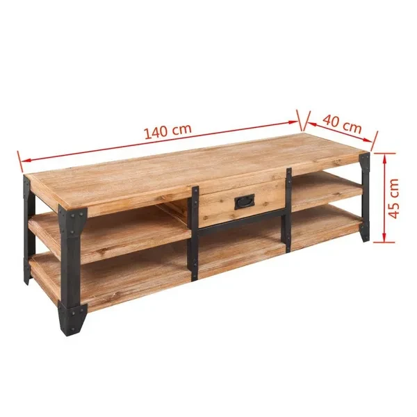 This wooden TV stand is both stylish and practical. It will give your living room a cool, industrial look. The TV Stand has been expertly crafted from 100% solid acacia wood with a brushed finish and steel, making it durable. It has sufficient storage space to keep your DVD player, game console, remote controls, and other knick-knacks organised and within reach. Assembly is easy. Colour: Brown and black Material: 100% solid acacia wood with a brushed finish + steel legs Dimensions: 140 x 40 x 45 cm (L x W x H) Steel thickness: 1.5 mm With a drawer Easy to assemble