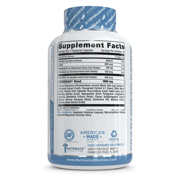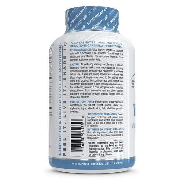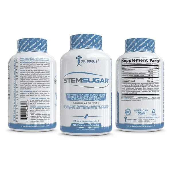 - PROMOTES HEALTHY BLOOD GLUCOSE LEVELS: STEMSUGAR® works with the body to help replenish critical nutrients that promotes healthy insulin sensitivity to help the body properly metabolize sugar and other carbohydrates more efficiently. It promotes healthy blood glucose (sugar) levels, higher energy levels, faster metabolism, and healthy weight management. It will also support optimal pancreas, liver, and cardiovascular functions while providing deep immune system support with key antioxidants.