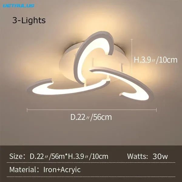 3-Lights: Chandelier Size: 56 × 10 cm (22"Dia x 3.9"H) Material: Iron+Acrylic Voltage: AC85-265V Light Source Color: 1.Warm White, NO REMOTE 2.Cool White, NO REMOTE 3.Dimming with Remote: Can use the remote control to adjust the color temperature and brightness. Wattage: 1.Warm White: 30W 2.Cool White: 30W 3.Dimming with Remote: 60W 6-Lights: Chandelier Size: 76 × 9 cm (29.9"Dia x 3.5"H) Material: Iron+Acrylic Voltage: AC85-265V Light Source Color: 1.Warm White, NO REMOTE 2.Cool White, NO REMOTE 3.Dimming with Remote: Can use the remote control to adjust the color temperature and brightness. Wattage: 1.Warm White: 60W 2.Cool White: 60W 3.Dimming with Remote: 120W NOTE: ●Warm White and Cool White only one color, not dimmable. ●Please pay attention to the size and light source color of the product before placing an order.