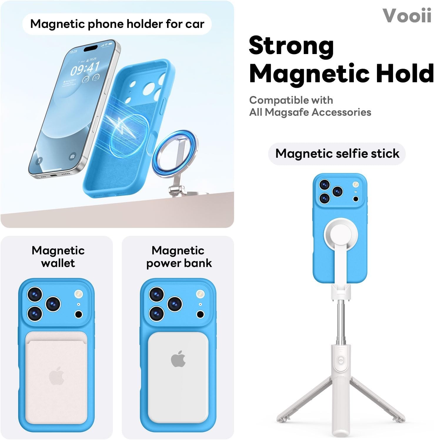Vooii Magnetic for iPhone 17 Pro Max Case, Compatible with Magsafe (Premium Liquid Silicone) (Integrated Camera Control Button) Full Body Protective Anti-Scratch Microfiber Lining 6.9 inch, Blue