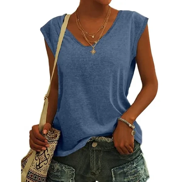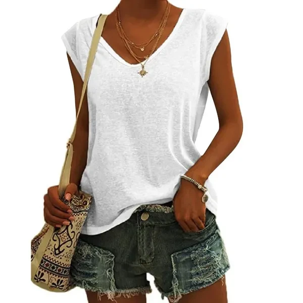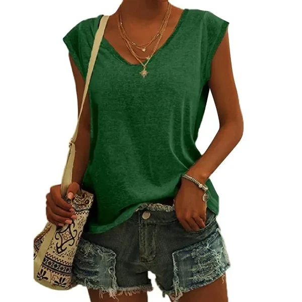 Women Casual Loose Fit V-Neck Sleeve Top Simple Solid Color Basic Blouses T-Shirt