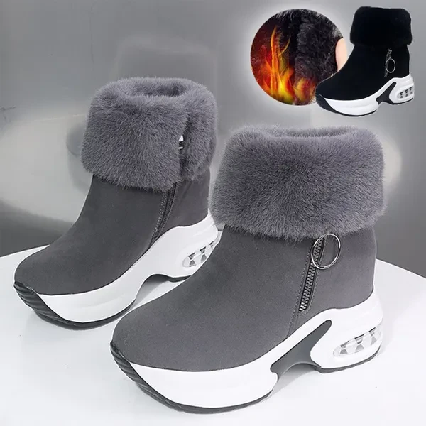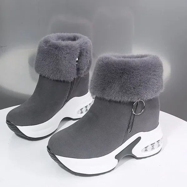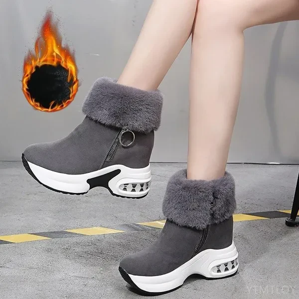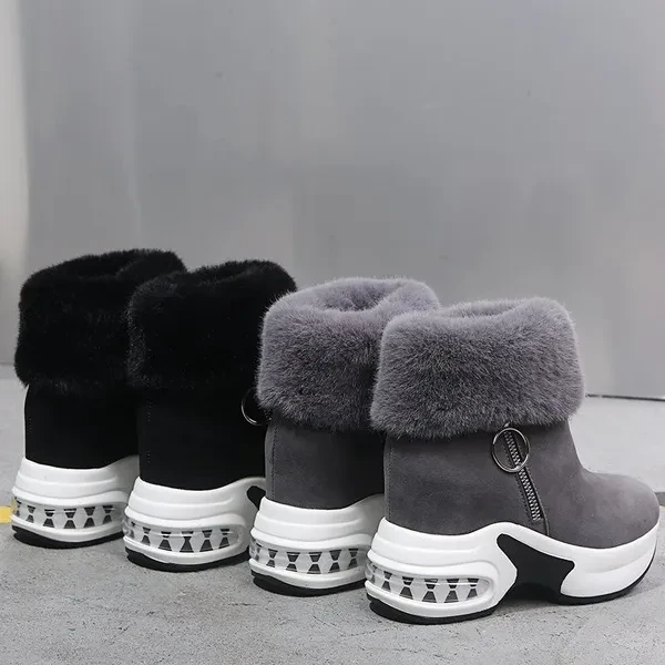 Note:the shoes inside is with fur, please choose one size large. Upper Material : Flock Boot Height : ANKLE Department Name : Adult Heel Type : Height Increasing Boot Type : Snow Boots Lining Material : Fleeces Shaft Material : Flock Toe Shape : Round Toe Season : Winter Item Type : Boots Insole Material : PU Outsole Material : Rubber Closure Type : ZIP Fit : Fits true to size, take your normal size