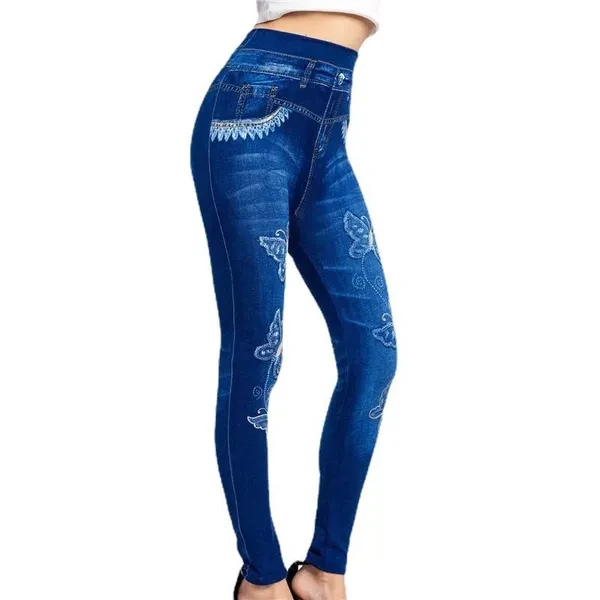 Women High Waist Jeans Leggings Butterfly Print Ankle Length Pants Super Stretchy Skinny Imitation Jeans Leggings