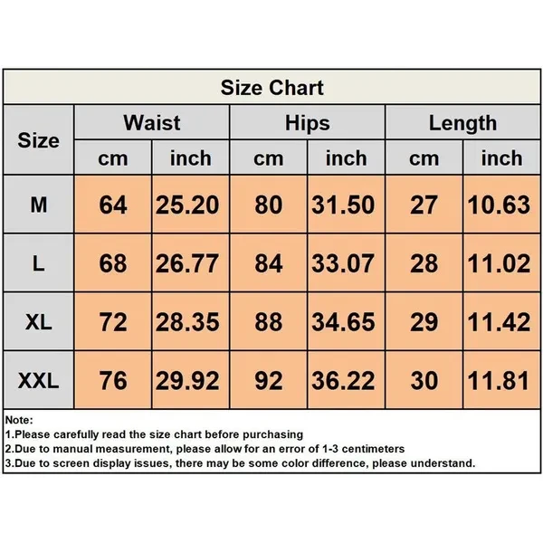 Material:Polyester Style:Fashion/Casual Waist:High Waist Color:As the picture shows Size:M L XL XXL Package include: 1pcs Women's Shorts Warming Note: 1.Please read the size chart carefully before purchasing,thanks. 2.Due to manual measurement, please allow for an error of 1-3 centimeters. 3.Due to display setup issues, please allow for a slight color different.