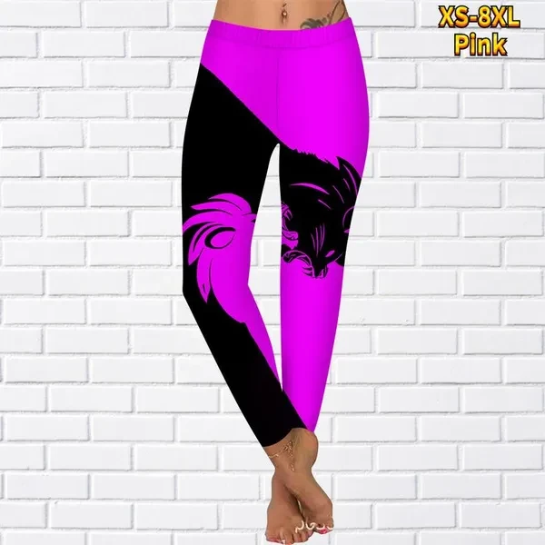 Women's Comfort Fitness Sports Pants Lady Breathable Slim Fit Yoga Pants 3D Two Tone Patchwork Lion Print Leggings Plus Size XS-8XL