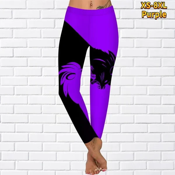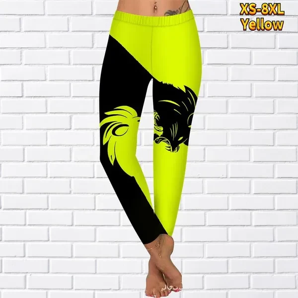 Women's Comfort Fitness Sports Pants Lady Breathable Slim Fit Yoga Pants 3D Two Tone Patchwork Lion Print Leggings Plus Size XS-8XL