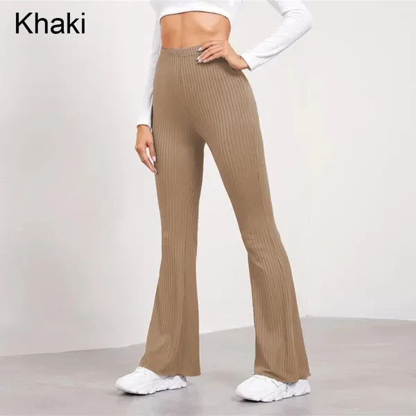 Women's Fashion Casual Solid Sports Pants High Waist Yoga Pants Trumpet Pants Soft Comfy Pants