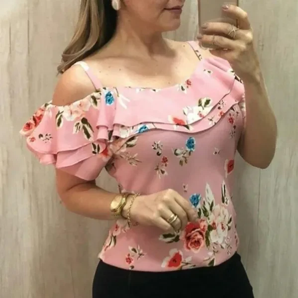 Women's Fashion Casual Summer Loose off shoulder Floral print Tops