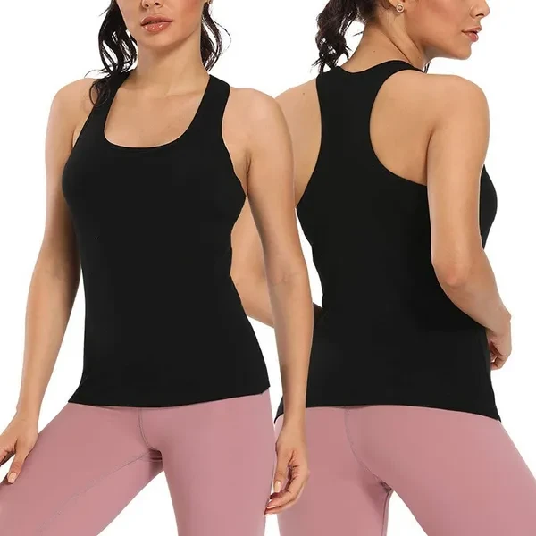 Women's Racerback Tank Top with Built-in Shelf Bra Stretch Workout Sport Cami Yoga Exercise Running Camisole Shirt Summer Top Vest