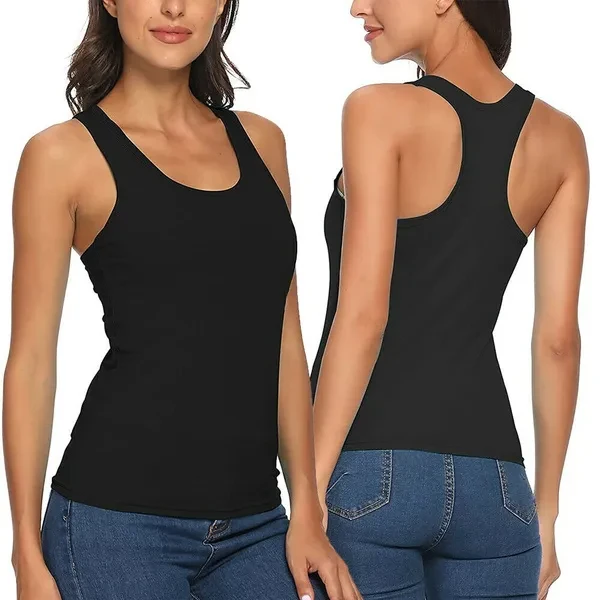 Features: Pull On closure High-quality fabric: Ritera women's vest is made of 95% cotton and 5% spandex. Breathable, soft and elastic material keeps you Comfortable throughout the exercise. Fashionable design: spoon collar, double layer Fabric design on the chest, don't worry about chest exposure,the clothes are elastic and can fit any body type. Suitable for occasions: very suitable for gym, yoga, sports, fitness, running, etc. Stay trendy and cool in everyday wear and outdoor activities. Matching skills: This loose female vest is perfect for matching tights or jeans, giving a refreshing spirit and giving a stylish and elegant feeling. Size Chart: Bust Size (S): 85-90cm Bust Size (M): 90-95cm Bust Size (L): 95-100cm Bust Size (XL): 100-107cm Bust Size (2XL): 107-112cm Bust Size (3XL): 112-117cm Length (S): 57.5cm Length (M): 58.7cm Length (L): 60cm Length (XL): 61.2cm Length (2XL): 62.5cm Length (3XL): 63.7cm