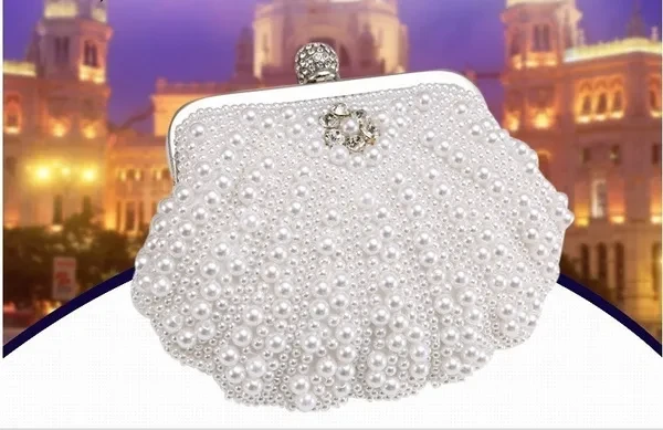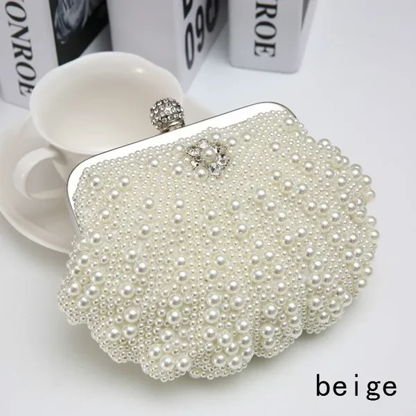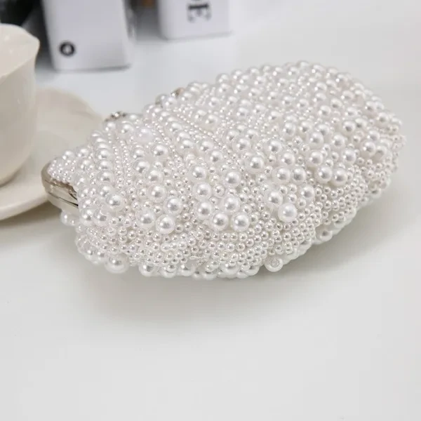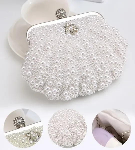 Women's Shell Shape Faux Pearl Clutch with Handle Handbag Wedding Purse Evening Dinner Party Bag for Bridal Evening Handbag