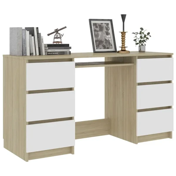 Our writing desk is a practical addition to your study and working area! This computer desk is made of the quality board, making it sturdy, durable and long-lasting. Our workstation is perfect for any tight office, dorm space, space-limited house, or even if you just prefer to manage the space you have! Additionally, the desk has 6 drawers which provide enough space for you to store books and documents. This office desk is easy to clean with a damp cloth.