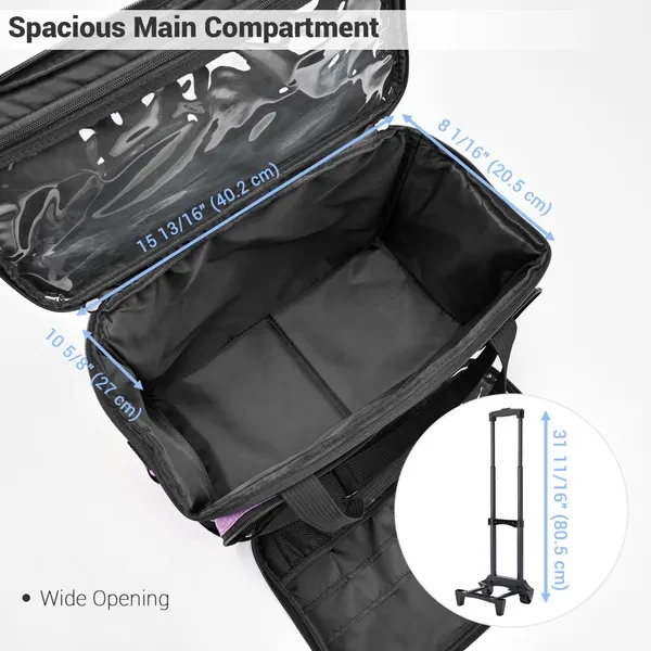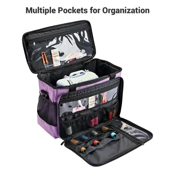 Features: - Portable & Flexible - Sewing machine case features 16 15/16"x9 13/16"x12 3/16" size & 4.85 Lbs light weight for easily taking out anytime & anywhere; 3 carrying ways: dragging by detachable trolley with telescoping handle, hand carrying by sturdy handle and shoulder carrying by adjustable anti-slip strap - Spacious Main Compartment - With 15 13/16" x 8 1/16" x 10 5/8" large internal space & large weight capacity, it is suitable for most standard sewing machines of different brands for storage & protection; Wide opening design for easy access to put in and take out - Multiple Pockets for Organization - Front bag with 7 mesh pockets for threads, 2 transparent zipped pockets for needles, buttons or fabric samples and several different-size pockets for scissors or measuring tools; 1 large transparent pocket under lid for clearly displaying each item; 2 mesh pockets on the sides for easy access to necessary things - Sturdy & Durable - Hook and loop for firmly attaching and fixing frame to the bag; Aluminum alloy trolley and heavy-duty wheels for maximum durability; Firm polyester with wear-resistance, provides full protection and serves long time - Wide Application - Suitable for sewing beginners, professional tailors, hobby sewers or fashion designers to protect their machine from dust & scratch, to easily storage the necessaries in order, or to carry their sewing machines for classes, work, holiday or trip anytime Specifications: - Overall Dimension of Case: 16 15/16" x 9 13/16" x 12 3/16" (43 x 25 x 31 cm) - Case Material: Polyester - Net Weight: 4.85 Lbs (2.2 kg) Package Contents: - 1x Sewing Machine Case with Trolley Dolly - 1x Strap - 1x Bottom Pad