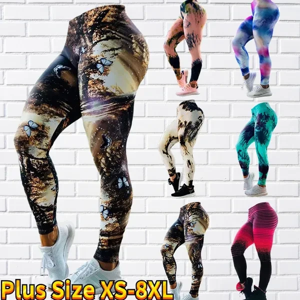 Yoga Leggings Ladies Fashion Printed Leggings Ladies Casual Pants Fitness Pants Ladies Sports Leggings Yoga Pants Plus Size XS-8XL
