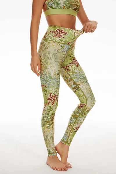 Pattern Description: Inspired by the gentle sway of water waves, our designer has created this pattern in unique camo color hues to celebrate freedom, a connection with nature, and personal style. Illusion-amo print doesn't just help you make a statement, it also encourages you to let your inner light shine brightly. Product Features: High-waisted design perfectly shapes, supports and flatters any body types No small elastic band at the top A hidden pocket at the back No side seams for extra flattering fit and comfort Fabric: Made with 84% RPET and 16% spandex from recycled plastic bottles and it is 100% recyclable! - Four-way stretch, breathable and anti-bacterial. Model Info: Juliana;// Height: 5'8// Bust 33.1” // Waist 23.6” // Hips 35.8//SILVERWIND size Regular S
