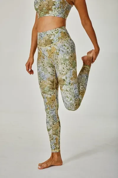 Pattern Description: The designer skillfully incorporates a European vintage style to cleverly showcase the unique textures of various plants in nature. By employing warm tones of yellow, green, and brown, they bring forth a sense of vintage elegance and nostalgia. Wearing these pieces not only exudes femininity but also creates a connection to the concept of "returning to roots," as it embraces the natural and organic elements found in the world of plants. This print beautifully captures the essence of reconnecting with nature and the timeless beauty it offers. Product Features: High-waisted design perfectly shapes, supports and flatters any body types No small elastic band at the top A hidden pocket at the back No side seams for extra flattering fit and comfort Pair it with our matching Nostos Mesh Strappy Bra for a totally unique and dreamy look Fabric: Made with 84% RPET and 16% spandex from recycled plastic bottles and it is 100% recyclable! - Four-way stretch, breathable and anti-bacterial. Model Info: Natali // Height: 5'7  // Bust 34.3” //  Waist 24.4” // Hips 36.6 // SILVERWIND size Regular S  Poli // Height: 5'7 // Bust 33.5” // Waist 23.6” // Hips 35” // SILVERWIND size Regular S